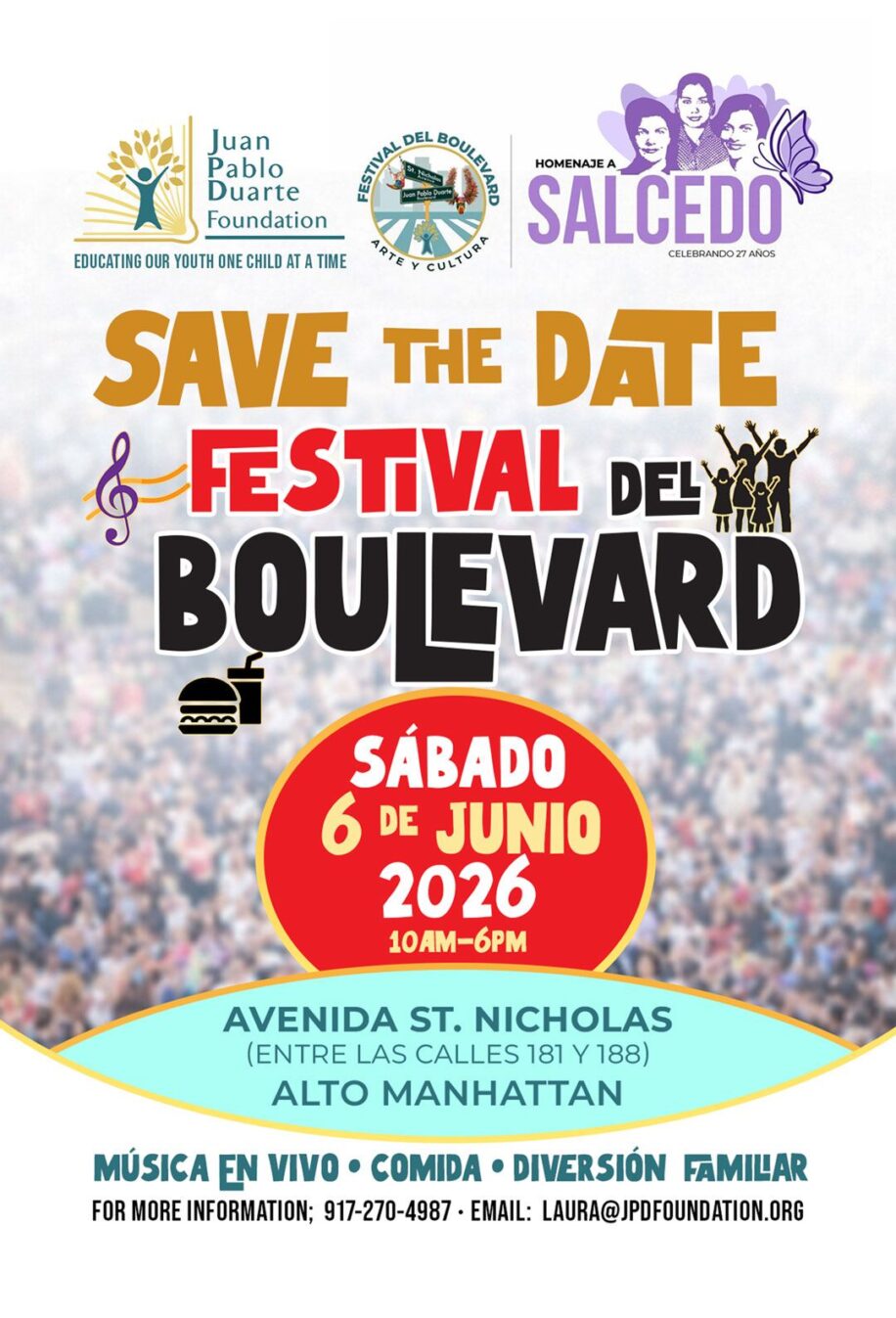 The traditional Festival Del Boulevard organized by the Juan Pablo Duarte Foundation will happen on June 6th, 2026. This edition will also be an homage to Salcedo and Las Hermanas … Continue reading June 6th, 2026: Join us for the 27th Edition of the Festival del Boulevard!